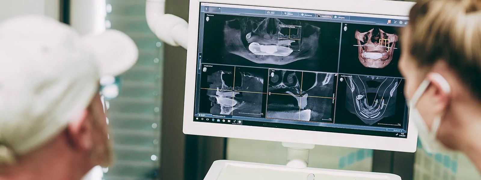 Mit der Digitalen Volumentomographie (DVT) erstellen wir dreidimensionale, hochauflösende 3D-Röntgenbilder Ihres Kiefers und Ihrer Zähne — schnell, präzise und mit vergleichsweise geringer Strahlenbelastung. Diese 3D-Aufnahmen ermöglichen eine exakte Diagnose und Planung bei komplexen Fällen, z. B. Implantationen, Weisheitszahnentfernungen oder Wurzelbehandlungen. So können wir Behandlungen sicherer und schonender durchführen und Ihnen genau passende Lösungen anbieten.